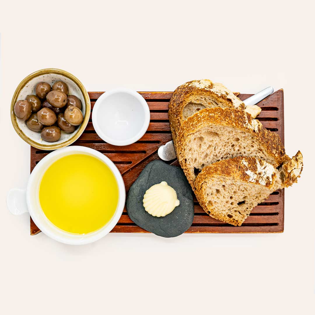 Pain Pâte Mère, Olives Marinées, Beurre Marin, Huile d'Olive Esporão